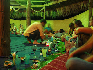 the pool or in my hammock.There was a distant view of the Atlantic Ocean and 360 degrees of Dominican countryside. Blue Moon was built as a yoga retreat with one of the most eclectic styles I have ever seen. We were treated to an authentic Indian dinner sitting on mats underthe cabana and eating off banana leaves. It was one of the most special nights we have had in this country since rarely does the whole group eat together since we all live in different homes. The original plan was to spend three days working on research questions, but plans changes. There was a countrywide transportation stike for public transportation drivers who are angry about the rising gas prices and not getting payed more. It was too dangerous to be out on the roads, so we all had the pleasure of being held captive in one of the most relaxing and beautiful places I have ever stayed.